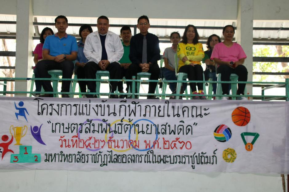 แข่งขันกีฬาภายในคณะ "เกษตรสัมพันธ์ต้านภัยยาเสพติด" ซึ่งเป็นโครงการพัฒนานักศึกษาให้มีความพร้อมในการทำงานสู่ประชาคมอาเซี่ยน+3 ในวันที่ 25-26 ธันวาคม 2560 ณ โรงยิมเนเซี่ยม 1 มหาวิทยาลัยราชภัฏวไลอลงกรณ์ ในพระบรมราชูปถัมภ์
