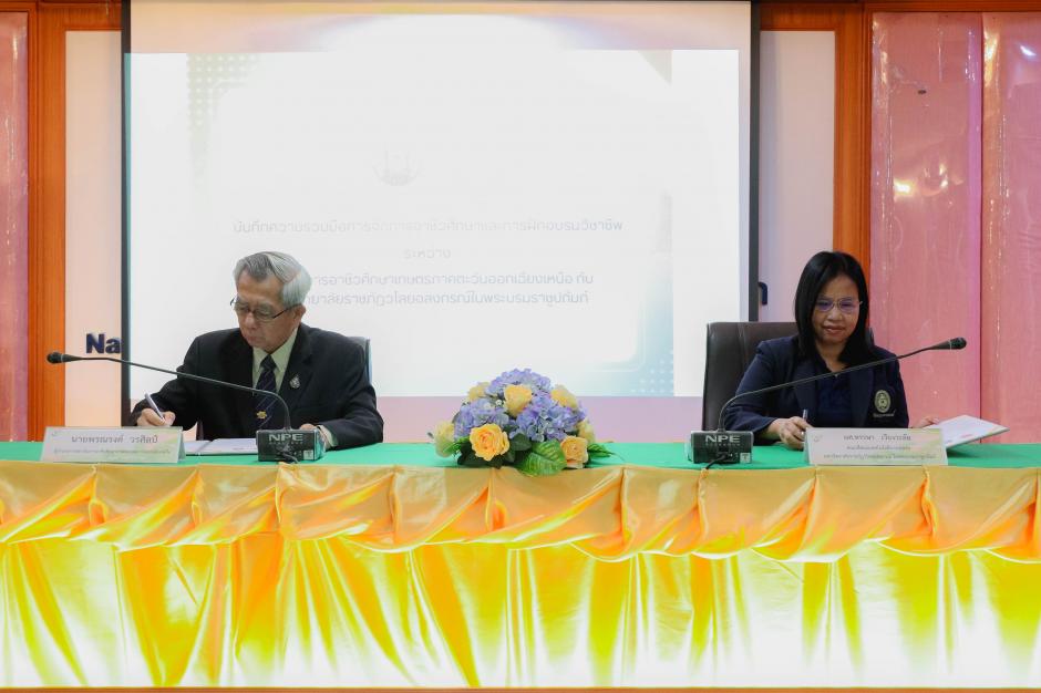บันทึกความร่วมมือการจัดการอาชีวศึกษาและการฝึกอบรมวิชาชีพ ระหว่าง สถาบันการอาชีวศึกษาเกษตรภาคตะวันออกเฉียงเหนือ กับ มหาวิทยาลัยราชภัฏวไลยอลงกรณ์ ในพระบรมราชูปถัมภ์ โดยนายพรณรงค์ วรศิลป์ ตำแหน่ง ผู้อำนวยการสถาบันการอาชีวศึกษาเกษตรภาคตะวันออกเฉียงเหนือ กับ มหาวิทยาลัยราชภัฏวไลยอลงกรณ์ ในพระบรมราชูปถัมภ์ โดยรองศาสตราจารย์ ดร.สมบัติ คชสิทธิ์ รักษาราชการแทน อธิการบดีมหาวิทยาลัยราชภัฏวไลยอลงกรณ์ ในพระบรมราชูปถัมภ์ เพื่อพัฒนาระหว่างกันโดยการจัดโครงการกิจกรรมต่างๆ ทางวิชาการที่เกี่ยวกับการศึกษา การพัฒนาทรัพยากรมนุษย์ การวิจัยและการบริหารจัดการ เพื่อสนับสนุนภารกิจของแต่ละฝ่าย เผยแพร่องค์ความรู้ให้แก่กัน ตลอดจนความร่วมมือด้านอื่นๆ ที่เกี่ยวข้อง