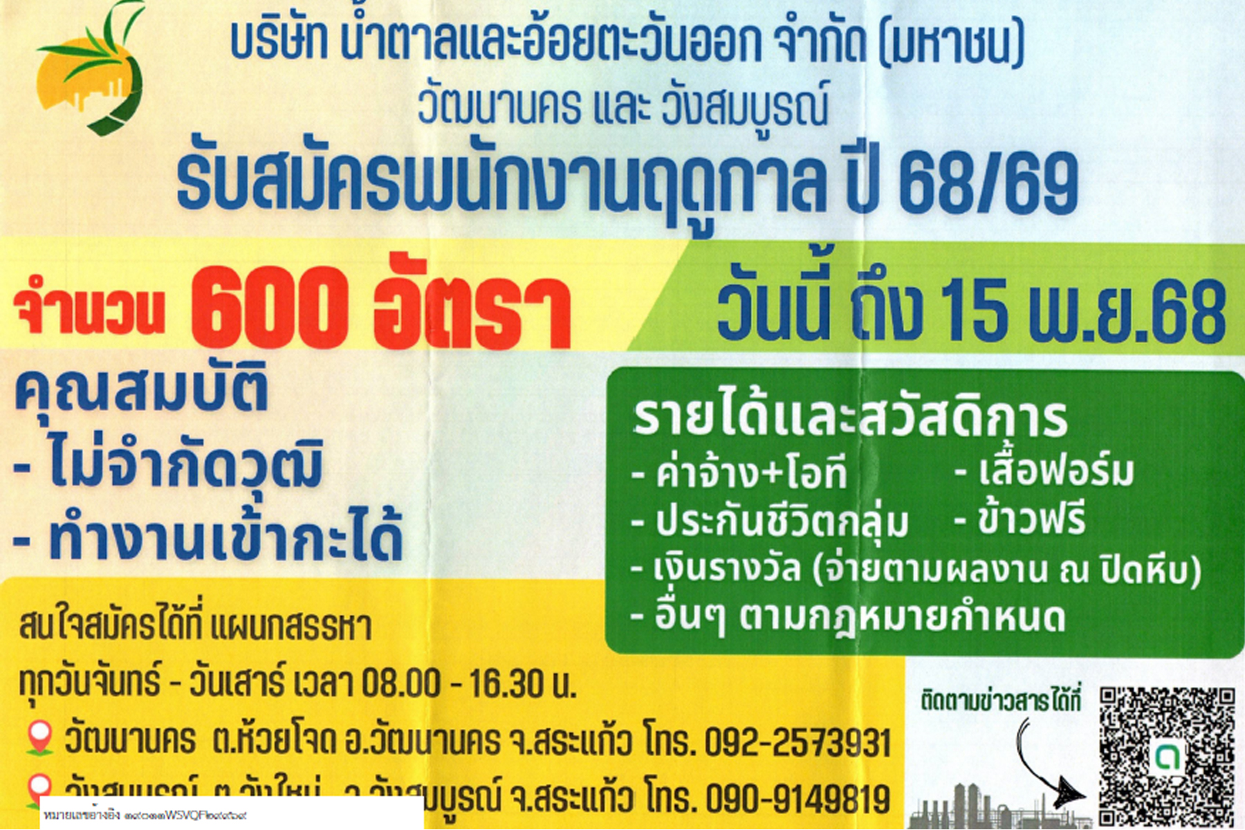 ด้วยบริษัท น้ำตาลและอ้อยตะวันออก จำกัด (มหาชน) ตั้งอยู่เลขที่ 279 หมู่ 1 ต. ห้วยโจด อ. วัฒนานคร จ. สระแก้ว ...